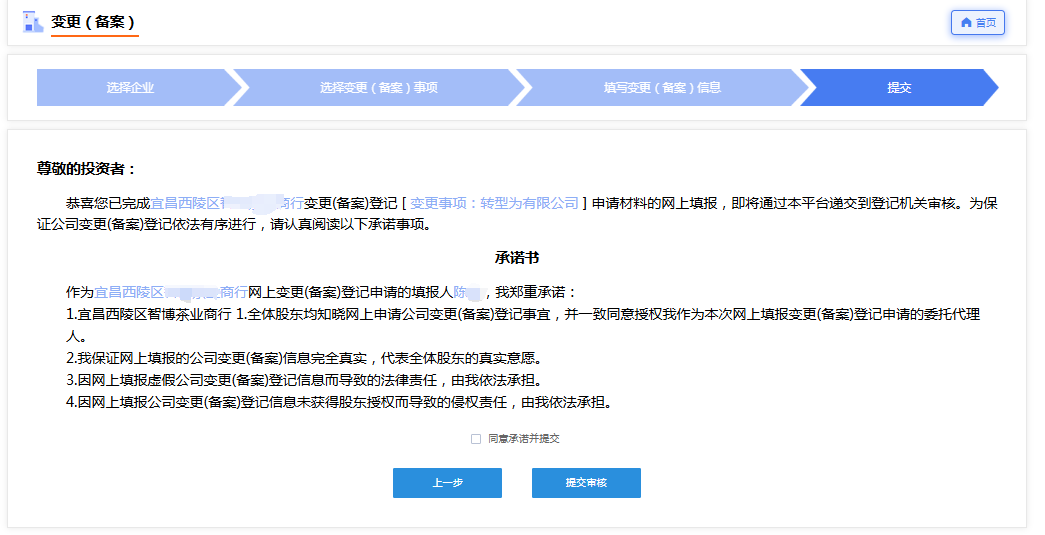資料確認環節展示轉型為企業類型對應的文書材料,逐一查看對應的文書信息,確認無誤后,提交內網。