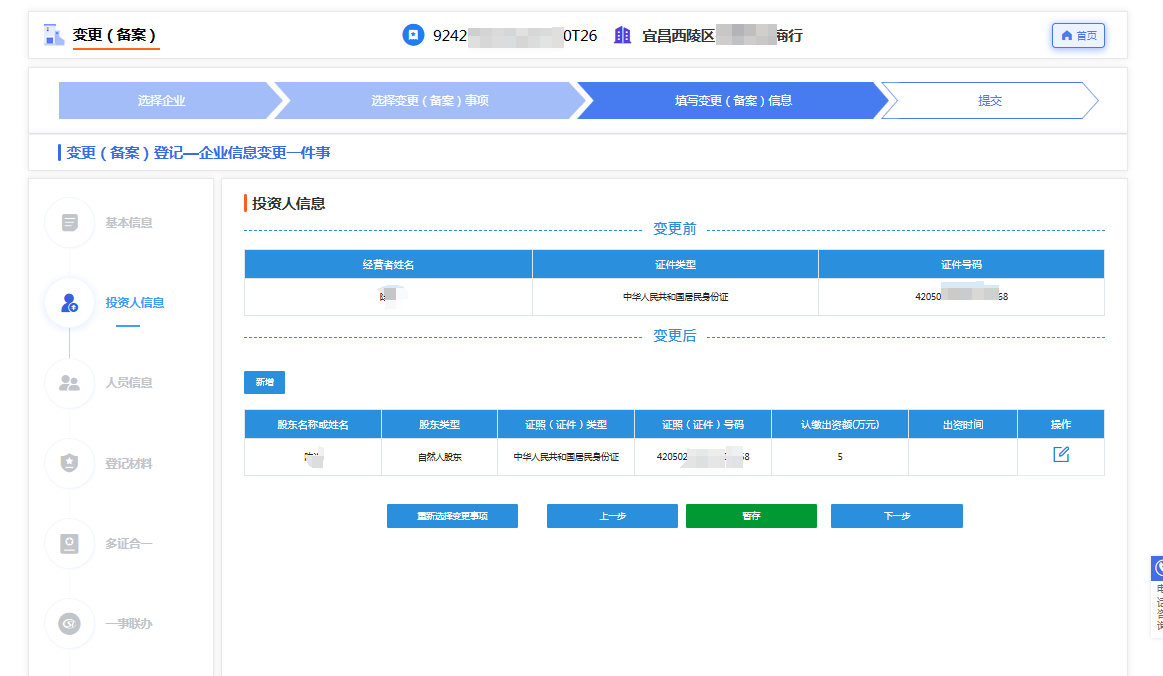 投資人信息中會自動將原經營者信息轉變為對應類型的人員信息。有限公司轉為股東、合伙企業轉為合伙人、個人獨資企業轉為投資者。