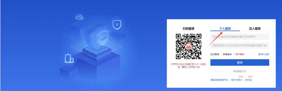②填寫信息進行法人或者個人注冊進行登錄(如辦理對象為單位職工,請使用單位信息進行法人注冊并登錄申報;如辦理對象為靈活就業人員,請使用自然人信息進行個人注冊并登錄申報)。